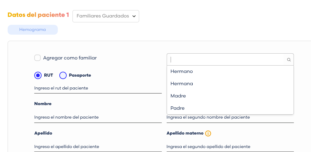 ¿Y si lo llevamos un poco más allá? Démosle el toque Examedi a la funcionalidad y hagámosla aún más cool. Puedes guardar a toda tu familia, una sola vez, y después con un par de clicks tener todo listo para agendar.